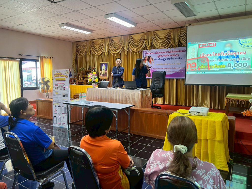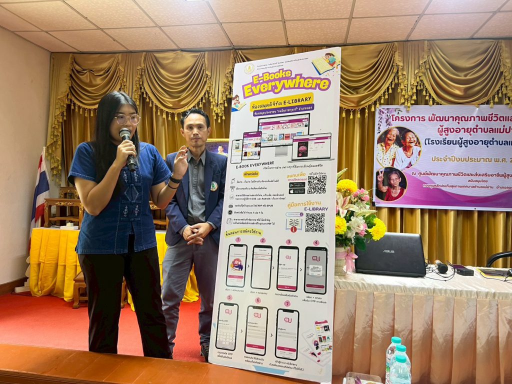 นางอัจจิมา วรรณเลิศ ครู รักษาการในตำแหน่ง ผอ.สกร.ระดับอำเภอลอง มอบหมายให้นางสาวอนันตญา อินทราวุธ บรรณารักษ์ปฏิบัติการ,นายรัชตะ จิตรบุณย์ บรรณารักษ์ และนางสาวธนัญชนก จักรแหลม บรรณารักษ์ กิจกรรมส่งเสริมทักษะการพูดการให้ความรู้ทาง สื่อออนไลน์ในการประชาสัมพันธ์ในผู้สูงอายุ เพื่อยกระดับคุณภาพชีวิต พัฒนาการเรียนรู้ และส่งเสริมการมีส่วน ร่วมทางสังคม โดยมีประโยชน์ในด้านการรับข้อมูลข่าวสารอย่างทันท่วงที การแสวงหาความรู้ในเรื่องที่สนใจ เช่น สุขภาพ การเงิน และความบันเทิง และการสื่อสารกับคนในครอบครัวและสังคม ทำให้ผู้สูงอายุรู้สึกทันสมัย ไม่ตก ยุค และมีสุขภาพจิตที่ดีขึ้น และประชาสัมพันธ์ ห้องสมุดดิจิทัล E-LIBRARY ห้องสมุดประชาชน “เฉลิมราชกุมารี” อำเภอลอง E-BOOK EVERYWHERE เปิดโลกการอ่านเพราะทุกที่คือการเรียนรู้ตลอดชีวิต ยืมหนังสือออนไลน์ง่ายๆ ผ่าน CU eLibrary โดยมีกลุ่มเป้าหมายเข้าร่วม จำนวน 50 คน ณ ศูนย์พัฒนาคุณภาพชีวิตและส่งเสริมอาชีพผู้สูงอายุ ตำบลแม่ปาน อำเภอลอง จังหวัดแพร่