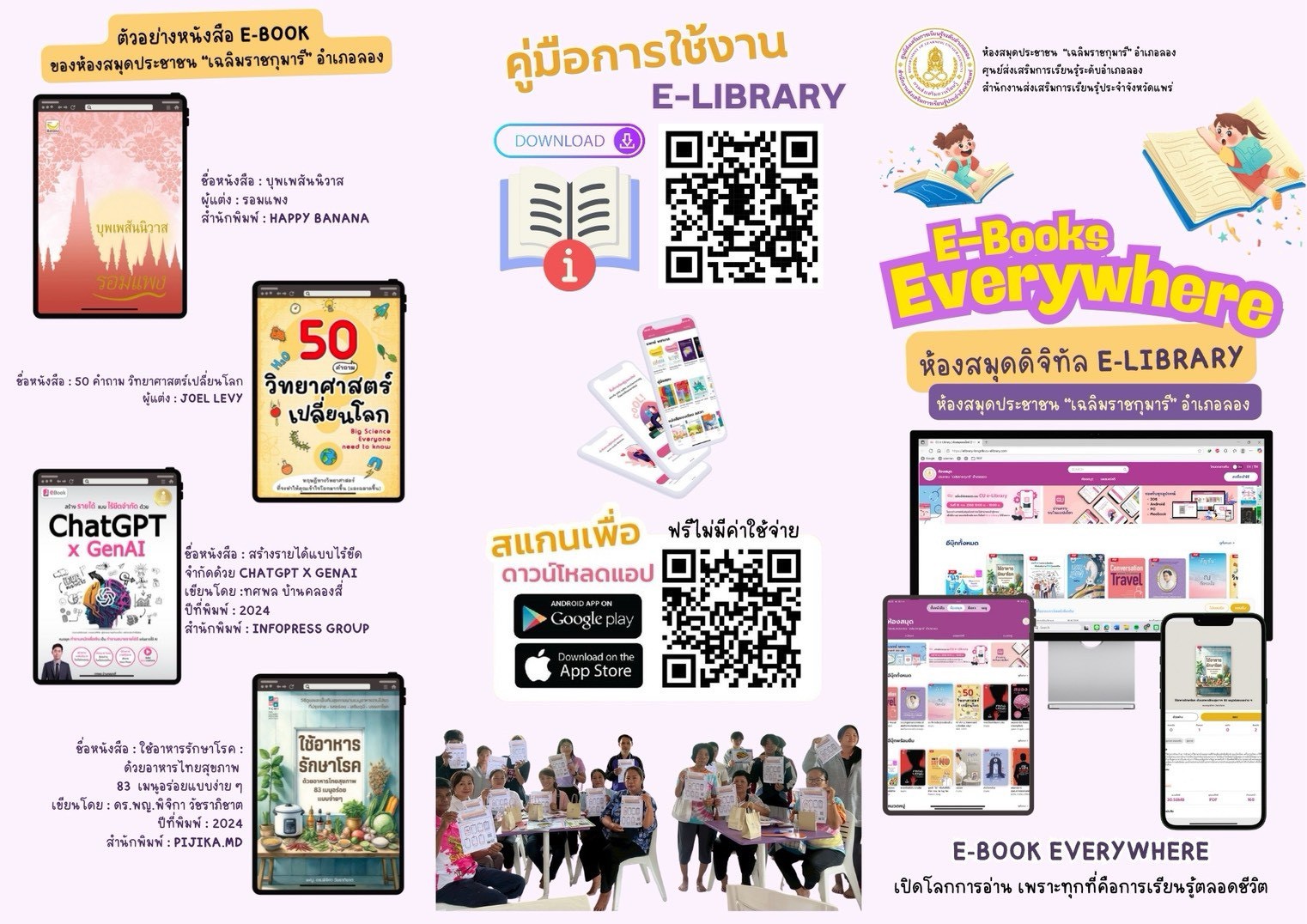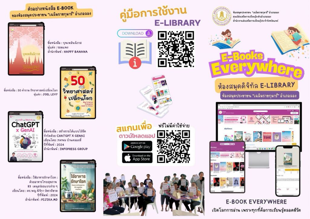 นางอัจจิมา วรรณเลิศ ครู รักษาการในตำแหน่งผู้อำนวยการศูนย์ส่งเสริมการเรียนรู้ระดับอำเภอลอง มอบหมายให้นางสาวอนันตญา อินทราวุธ บรรณารักษ์ปฏิบัติการ ,นายรัชตะ จิตรบุณย์ บรรณารักษ์ และนางสาวธนัญชนก จักรแหลม บรรณารักษ์ จัดกิจกรรม “อ่านแจกโบว์” 🎗️สำหรับผู้มาใช้บริการอ่านหนังสือ จะได้รับ “โบว์ดำ” เพื่อร่วมแสดงความอาลัย และน้อมรำลึกในพระมหากรุณาธิคุณอย่างหาที่สุดมิได้ 📢📍ประชาสัมพันธ์ ห้องสมุดประชาชนจังหวัดแพร่ สกร.ประจำจังหวัดแพร่ นำเข้าหนังสืออิเล็กทรอนิกส์จำนวน 12 เล่ม ในชุด “สมเด็จพระนางเจ้าสิริกิติ์ พระบรมราชินีนาถ พระบรมราชชนนีพันปีหลวง” เข้าสู่ ระบบ CU- E-Library ซึ่งดำเนินการร่วมกับ ศูนย์หนังสือแห่งจุฬาลงกรณ์มหาวิทยาลัย และห้องสมุดดิจิทัล E-LIBRARY ห้องสมุดประชาชน “เฉลิมราชกุมารี” อำเภอลอง E-BOOK EVERYWHERE เปิดโลกการอ่านเพราะทุกที่คือการเรียนรู้ตลอดชีวิต ยืมหนังสือออนไลน์ง่ายๆ ผ่าน CU eLibrary ณ ห้องสมุดเคลื่อนที่สถานีรถไฟบ้านปิน อ.ลอง จ.แพร่