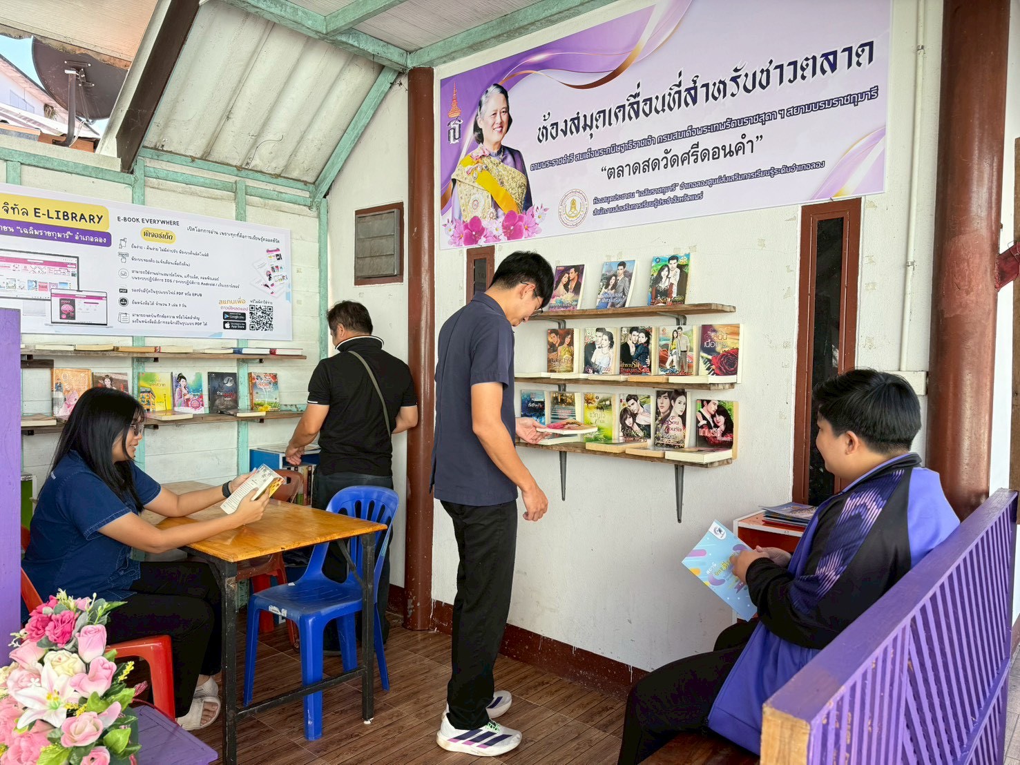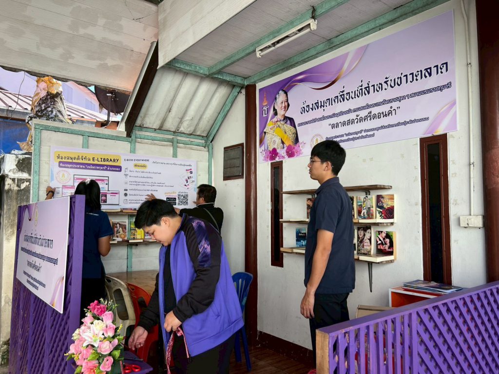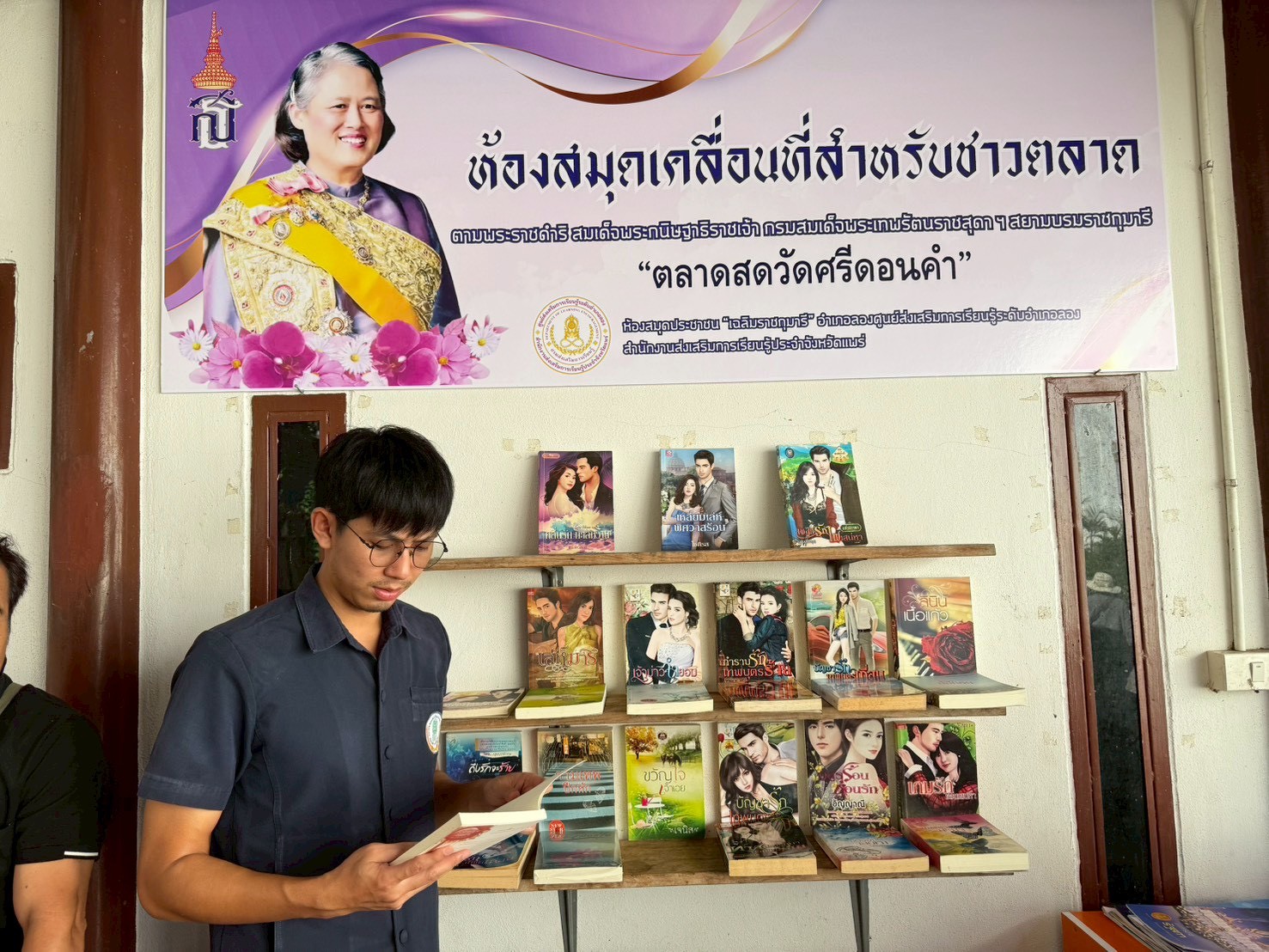 บรรณารักษ์ พร้อมด้วยคณะครู สกร.ระดับอำเภอลอง จัดกิจกรรมหมุนเวียนสื่อ​หนังสือ​ วารสาร​ และปรับปรุงภูมิทัศน์อาคารสถานที่ให้สะอาด พร้อมให้บริการประชาชน ณ ห้องสมุดเคลื่อนที่สำหรับชาวตลาด ตลาดสดวัดศรีดอนคำ ตำบลห้วยอ้อ อำเภอลอง จังหวัดแพร่